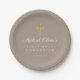 Elegant Taupe Religious Cross First Communion Paper Plate