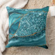 Elegant Teal and Gold Glitter Ocean Agate Cushion