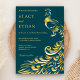 Amaze your guests with this elegant wedding invitation featuring a beautiful peacock with modern typography against a dark teal background. Simply add your event details on this easy-to-use template to make it a one-of-a-kind invitation.