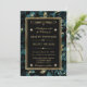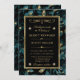 Elegant Teal and Gold Rose Floral Pattern Wedding Invitation