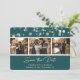 Elegant teal and gold wedding photo save the date cards with a modern script font. Easily personalise this teal photo save the date with your images and wedding details including a wedding website.