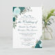 Elegant Teal Aqua Watercolor Roses Formal Wedding Invitation