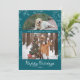 Share warm seasonal greetings with these elegant Christmas cards featuring two family photos arranged in a modern arch design—perfect for highlighting a pet photo on top. The rich teal palette pairs beautifully with vintage foliage and damask-inspired accents, while “happy holidays” appears in a modern handwriting script for a fresh seasonal touch. Personalized with your family name and year on the front, the back includes space for a short message and each family member’s first name. A stylish blend of refined typography, family photo charm, and timeless holiday elegance.