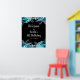 Elegant Teal Blue and Silver Flower Birthday Party Poster