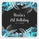 Elegant Teal Blue and Silver Flower Birthday Party Square Sticker