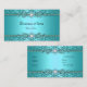 Elegant Classy Teal Blue Silver Damask Embossed Floral Business Cards Elegant All Occasions Diamond Jewel Image