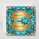 Elegant Teal Blue Gold Floral Birthday Party Invitation