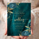 Elegant Teal Blue Gold Floral Wedding Invitation
