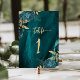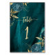 Elegant Teal Blue Gold Floral Wedding Table Number