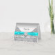 Elegant teal blue satin ribbon with diamond centre and silver diamond lace overlay thank you card. Please note the ribbon is a printed graphic and not an additional piece.