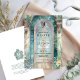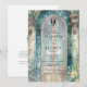 Elegant monogram wedding invitation featuring a beautiful, romantic, ornate watercolor garden-arch doorway scene showcasing your wedding details with glass mosaics and floral in beautiful blue, teal, green, rust, and orange hues. Back with a delicate baroque style monogram crest with the couple's initials and the possibility to add more details, ideal for website, attire, or rsvp instructions, or you may leave the text section blank and complement the invitation with our coordinating enclosure cards. Refine design where classic sophistication meets modern charm. The design exudes timeless elegance, complemented by stylish wording in a blend of classic typography and delicate handwritten calligraphy. Part of our "Timeless Elegance Green" collection, this invitation pairs seamlessly with matching suite items and event stationery. Romantic, elegant, and unique. This template is easy to use and designed for couples who desire a wedding invitation that is as memorable as their love story.