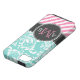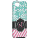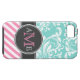 Elegant Teal Blue & white floral damask & stripes Case-Mate iPhone Case