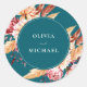 Elegant Teal Boho Chic Floral Wedding Classic Round Sticker
