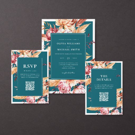 Elegant Teal Boho Chic Floral Wedding SuiteDesigned by Joshua S