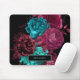 Elegant and stylish mousepad with teal and burgundy/red flowers on black. Personalised with your name. Perfect for your home office.