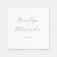 This wedding napkin features a minimalist and elegant design with a clean white background. The layout includes flowing script typography for the names, paired with a simple sans-serif font for clarity, all in a fresh teal color. The balanced composition emphasizes sophistication and modernity, making it perfect for an intimate and formal celebration. Its restrained aesthetic focuses on the significance of the occasion without any additional motifs or decorations.