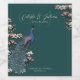 Elegant Teal Floral Peacock Wedding Wine Labels