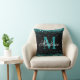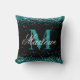 Elegant Teal Glitter Blue Green and White Monogram throw pillow with a customisable calligraphy script name and bold monogram template on a black background. A cute accent pillow for a girls bedroom or college dorm room.