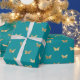 This wrapping paper features elegant faux gold foil butterfly pattern on teal background.