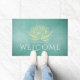 Elegant Teal Gold Lotus Yoga instructor Welcome Doormat