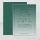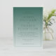 This elegant wedding invitation features a minimalist design with a gradient background transitioning from light teal to a deeper greenish-blue, creating a calming and sophisticated atmosphere. The layout is vertically oriented with centered text in a clean serif font that emphasizes formality and grace, ensuring readability against the subtle backdrop. The absence of decorative motifs allows the focus to remain on the clear communication of details, making it ideal for a formal event. Its understated elegance conveys a refined mood, perfect for celebrating a significant life moment like a wedding.