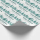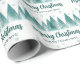 An elegant row of winter fir trees and snowflakes above your personalised Merry Christmas script and your family last name in beautiful teal green below the snow filled forest. A modern holiday design with your custom message on lovely, festive wrapping paper.