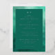 This elegant foil invitation features a sophisticated teal gradient background with crisp white text, creating a striking contrast. The classic serif font adds a touch of timeless charm, while the centered layout ensures a balanced and formal appearance. Perfect for weddings or significant celebrations, this design exudes an air of refinement and joy, making it ideal for those seeking a polished and memorable event announcement.