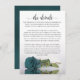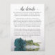 This beautiful wedding enclosure card is designed to give you extra space for whatever information your guests may need, including website, registry, reception, travel, accommodations, or any other details. The card features a gorgeous design with a single reflecting teal rose and a lacy script calligraphy title reading "the details." The back is a marbled turquoise colour.