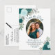 Elegant Teal Roses & Photo Wedding Save the Date Announcement Postcard