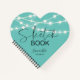 Customise this pretty and elegant sketch book with your personal details. Teal coloured heart with string lights.