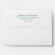 This wedding envelope features a clean, minimalist design with centred text on a plain white background. The muted teal colour palette adds a touch of elegance and sophistication, while the modern sans-serif font ensures clarity and readability. Perfect for formal invitations, this design emphasizes simplicity and professionalism, creating an understated yet refined look that is ideal for any special occasion.