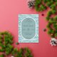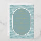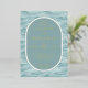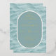This elegant wedding invitation features a serene water-like design with wavy lines in varying shades of blue, creating a tranquil and sophisticated atmosphere. The colour palette includes soft teal and lighter blue hues, complemented by luxurious gold accents for the text and decorative elements. The layout is centred around an oval frame that highlights the main details, using a combination of serif and script fonts to convey a modern yet timeless style. Perfect for couples seeking a harmonious blend of elegance and calmness, this invitation sets the tone for a memorable celebration.