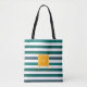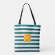 Elegant Teal White Striped Monogram Tote Bag
