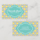 Elegant Teal Yellow Quatrefoil Party Planner Business Card