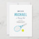 Serve up excitement with our tennis-themed kids' birthday invitation, featuring cute baby blue rackets and classic green tennis ball. This playful and simple invite sets the perfect scene for a fun-filled tennis party, sure to delight your little sports enthusiast.