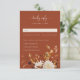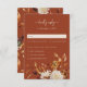 Elevate your wedding stationery with the Elegant Terracotta Autumn RSVP Card featuring an elegant script from the "Fall Terracotta Floral and Leaves Wedding Invitation Collection." Immerse your guests in the stunning elegance of hand-painted watercolor burnt orange and terracotta leaves, cream and beige dahlias, and stunning copper and rust-coloured roses on a terracotta background. This RSVP card captures the essence of an autumn wedding, ensuring a cohesive and unforgettable experience. Thoughtfully designed to complement coordinating invitations, enclosure cards, and welcome signs, this RSVP card adds a touch of sophistication to your wedding.