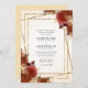 An elegant wedding invitation featuring beautiful dark terracotta and ivory coloured roses accented with a faux gold glitter frame. This invitation is perfect for a fall wedding.