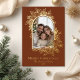 Send warm holiday wishes with this elegant Christmas card featuring a deep terracotta background and a luxurious faux gold foil frame of festive florals and leaves. The front design beautifully showcases your favourite family photo, highlighted by intricate golden details for a timeless and sophisticated look.