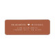 Elegant terracotta return address labels for your wedding invitations, save the dates, engagement announcements, couples shower invites, thank you cards and other wedding correspondence featuring your names monogrammed in classic white serif typography and joined together by a heart.
