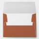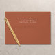 Elegant terracotta return address envelopes for your wedding invitations, save the dates, engagement announcements, thank you cards, etc., featuring your names in a classic white serif typography and your address in simple modern white lettering.