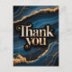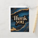 The deep, cool tones of the indigo and ultramarine blues are beautifully contrasted by striking, metallic gold veins that course dynamically across the surface, giving the impression of polished stone or a swirling cosmic scene. The central "Thank You" message is rendered in a stylish, slightly vintage calligraphy font, adding a touch of formal sophistication.