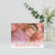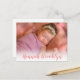 Elegant Thank You Pink Calligraphy Photo Birth Announcement Postcard