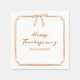 Add a touch of elegance to your Thanksgiving table with this refined napkin featuring a delicate bow border and graceful script. In a warm, burnt orange hue, this "Happy Thanksgiving" napkin brings a sophisticated charm to your holiday decor. Perfect for Thanksgiving gatherings, these napkins offer a chic addition to your table settings, complementing both traditional and modern aesthetics. Whether you're hosting a family feast or an intimate dinner, these napkins add a festive yet tasteful accent, making every guest feel welcome. Customise it with names or dates for a personalised touch.