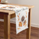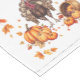 Luxury 108" long table runner featuring a classic Thanksgiving border of turkeys, pumpkins, and autumn leaves. Includes the elegant repeated phrase "Give Thanks". Perfect for formal harvest dinners.