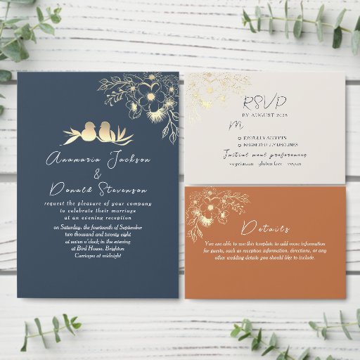 Orange and Navy Blue Wedding Invitation SuiteDesigned by Yana Bor