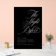 This fabulous rehearsal dinner welcome sign features elegant, flowing calligraphy that reads "The Night Before," setting a romantic and heartfelt tone for the special evening. Its bold design immediately immerses guests in the excitement of the upcoming wedding, just one day away. Designed on sleek, black glossy acrylic, this gorgeous sign is a true reflection of the couple’s sophisticated and distinctive sense of style. The deep, lustrous black surface exudes elegance and modern luxury, while the crisp white typography contrasts beautifully, creating a striking visual that effortlessly captures attention. This thoughtfully chosen combination of materials and design elements not only highlights the couple’s unique taste but also serves as a symbol of their refined aesthetic - a perfect balance of classic elegance and modern refinement. The bold yet minimalist look, whether placed at the entrance or within the event, makes a testament to the couple's elevated approach to even the smallest details, setting the tone for a wedding that’s both sophisticated and unforgettable.