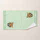 Elegant beautiful tiger animal face on lime green Bath Towl Set. Text can be personalised.