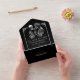 Each invitation unfolds a story of dark elegance, encapsulating a modern twist on traditional whimsy. From the first glimpse, your guests will be captivated by the unique, unconventional aesthetic. And for a seamless response, our invitations feature a convenient tear-away RSVP card, ensuring that the anticipation of your special day is matched by an effortless reply process.