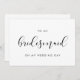 A simple and minimalist gift card to write a personal and heartfelt message for your bridesmaid on your wedding day. Fully customisable with your favourite colours (text and background). You can add a message on the back, or leave it blank if you prefer to handwrite your message later.
