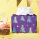 Purple Christmas wrapping paper, adorned with a repeating pattern of minimalist green-blue trees and delicate stars. This elegant and understated design captures the essence of the season, making it perfect for both traditional and contemporary celebrations.